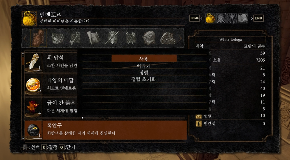 이때 인벤토리를 열고 흑안구 아이템을 사용한다.