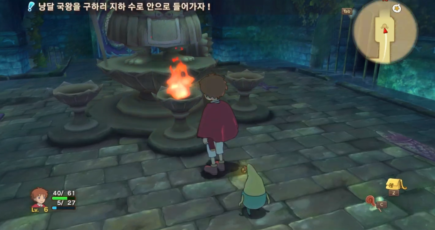 그다음 막힐 수 있는 구간은 고로넬 왕국의 냥달국왕을 구하러 가는 던전에서 불 받침대가 있는 곳에서 길이 막힐 수 있는데 여기서는 파이어볼 마법을 사용해야 된다. 많은 곳에서 막힐 때 마법을 자동적으로 사용하면 뚫릴 수 있는 곳이 많다.