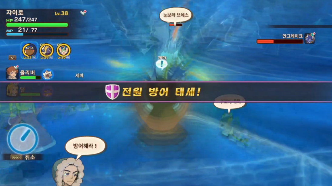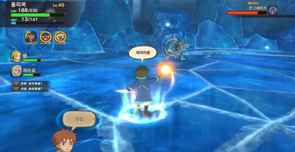 보스가 아이스볼을 시전하면 단독방어 시전으로 응수
