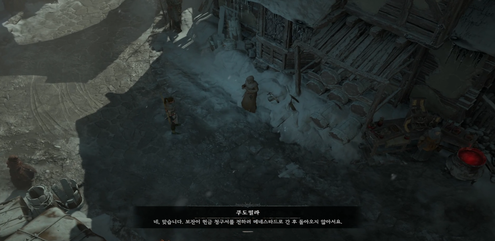 해당 위치의 근방~에는 보잔이 있다. 동료에게 배신을 당했다고 한다. 대화가 끝난 후 보물함을 클릭하여 청구서를 획득하자.