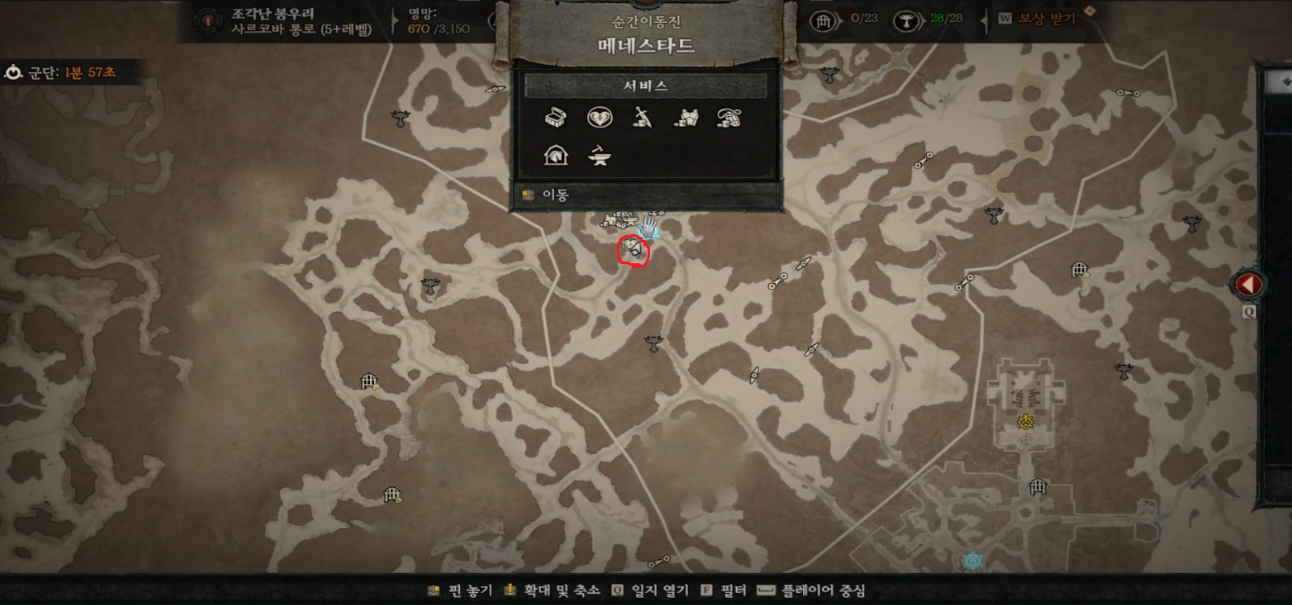 퀘스트를 받고나면 맵을 열어서 북쪽에 푸른 원이 있는것을 확인하고 그리로 이동한다.