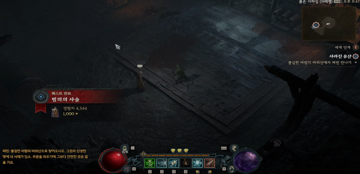 바로 사라진 유산 퀘스트가 시작된다. 밖으로 이동.