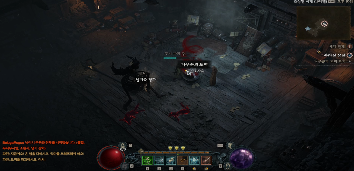 전투가 끝나면 파린이 주문을 외우기 위해 자신의 서재에서 보자고 한다.