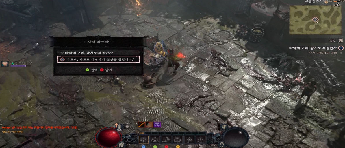이후 npc와 동행하여 따라가다 보면 전투를 하게 된다 전투를 하여 적을 쓰러뜨리자.