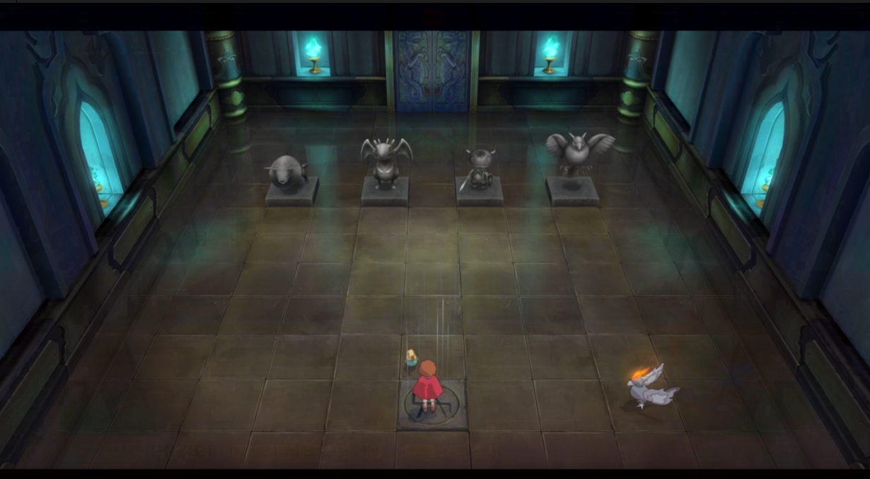 이후 현자의 시련 지혜의 퍼즐에서 또 뇌정지가오며 막힐텐데 첫번째 퍼즐의 정답은 위와 같다(육상동물, 드래곤, 이마젠, 비행동물 순서). 위의 배열로 정리하기위해 조종하는 실이라는 마법을 써야한다.