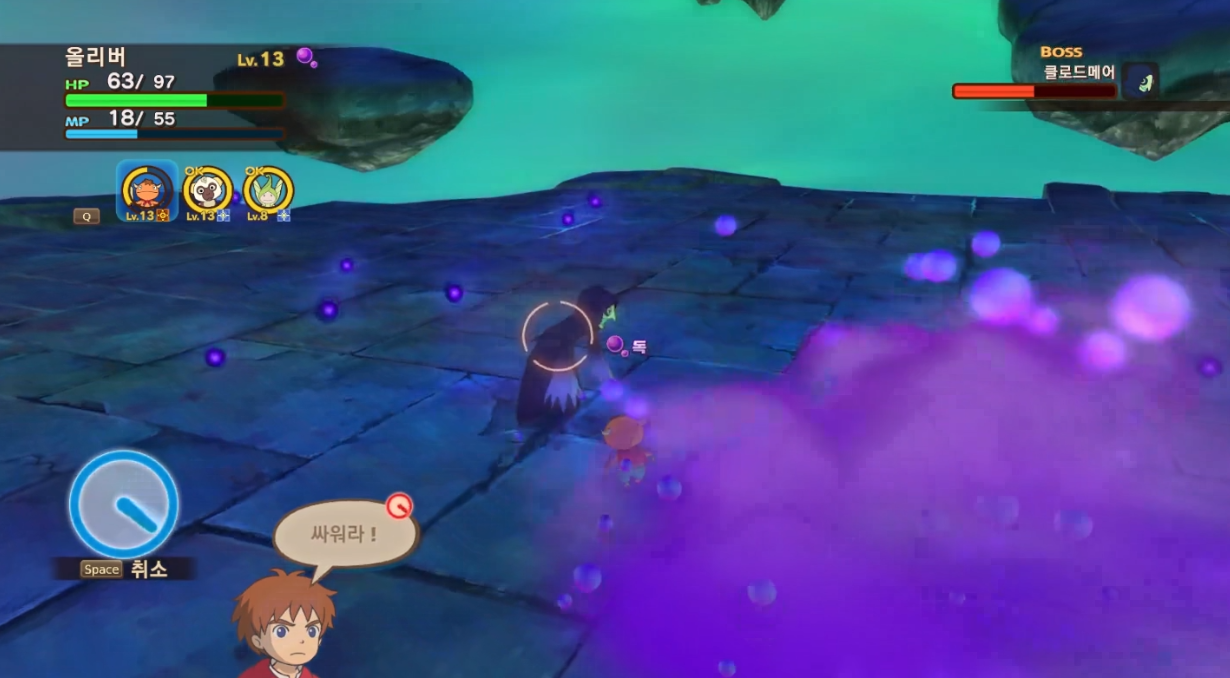 또 반드시 방어해야 하는 기술이 있는데 마구마구라는 기술을 차징하면 방어를 시전한다. 방어를 잘 시전하는 방법은 녀석이 공격을 시전할때 마구마구가 아닌것을 확인 확인하자마자 기술시전을 하는것이다. 그러면 방어할 타이밍을 케이크 먹는것처럼 쉽게 잡을 수 있다.
